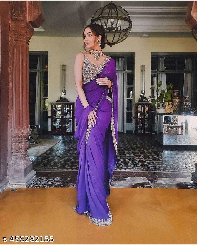zili Solid/Plain Banarasi Georgette Saree (Purple)