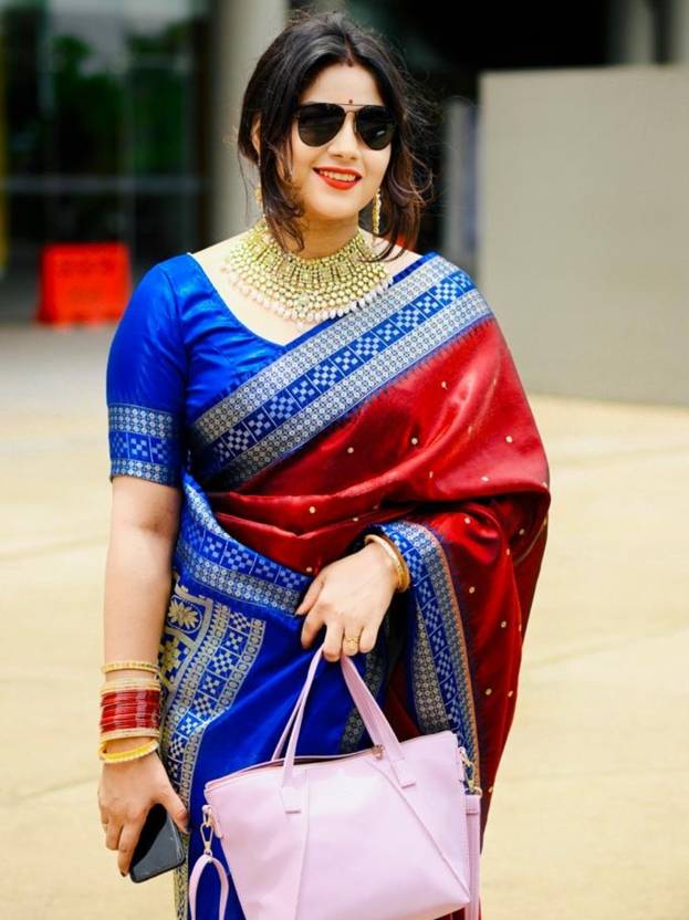 Galaxy Sarees Embroidered Narayanpet Satin Saree (Maroon)