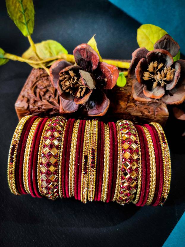 PRODUCT DETAILS: - This elegant charming bangle set is Maroon in color having whitish Golden Colored zircon Gemstone studded Kada with velvet bangles in middle giving you a gorgeous Look. This bangle set is available in pack of 34 bangles which is all set to make you feel ethnicity. SIZES: - This bangle set is available in three sizes - 2.4/2.6/2.8. QUALITY & PRICE: - We are always take stringent measures on product quality by maintaing its price. We assure you that our products are supreme in quality that is non-allergic and Budget friendly too. IDEAL GIFT: - Gifts are meant to express love and affection which can brings smile on your loved ones face. Bangles are more than the ornaments and thus perfect gift for your wife, sister, daughter, mother. OCCASION TO WEAR : - These bangles are shimmering having glitter/glossy finish and you can wear them in weddings, festivals, parties, karwachauth, diwali, raksha bandhan etc. ABOUT Zineka: - We aim at reforming the fashion trends at reasonable cost in India with our exclusive bangles collection. We are focussed to offer excellent customer experience that can make your everday special. JEWELLERY CARE: - Its always necessary to take care of your jewellery accessories for enjoying them longer, so avoid there contact with perfumes and sprays, Always store them in moist free and dirt free box, Use soft cloth to clean them.