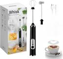 About this item [Quality Milk Frother?The detachable whisking head is made of food grade premium stainless steel, easy to clean. The frother wand is made of food grade ABS with easy and comfortable grip. The built-in powerful low-noise motor brings strengthened speed rotation without disturbing your families and gives you a calm and tranquil morning [Professional Kitchen & Barista Tool?There are 2 replaceable versatile whisks available. Choose the spring whisking head to make the perfect milk foam for your morning & afternoon coffee. And the ballon whisking head help you beat eggs & fluffy whipped cream. [USB Rechargeable Milk Frother? The handheld milk frother is powered by the built-in 1200mAh rechargeable lithium battery, without battery replacement, eco-friendly and saving your money. It also comes with a Android USB Cable, a fully charged takes 6 hours, convenient in daily use. [3 Speeds Adjustable Coffee Frother?Press the on/off switch to make the coffee frother work with blue light. Continue to press the on/off button, the speed will switch between low speed, medium speed and high speed. You could choose different speeds to achieve ideal frother effect. Note: please to use it in a tall bottle or deeper container to avoid splattered coffee or milk because of frother's strong motor! Premium Product with Elegant Looking: This milk foam maker uses advanced mixing pulse technology, which is low in noise and more durable. Beautifully styled in black to fit into any kitchen and look elegant. Simply press the button to turn on/off, easily make foam for coffee, all type milks, cream, cappuccino, matcha, hot chocolate. Color Will be send as per availability.