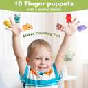 Number Treasure Hunt Game: There are 10 keys and 10 treasure chests with 10 animal finger puppets inside, each key and the lock on the box has a geometric shape, so kids need to find the right key to open the box and get the treasure inside! This is a fun game for kids to learn geometry and develop fine motor skills.
