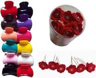 Zintalic 12 Pcs Multicolor Clutcher 03 With 12 Rose Nug Pin/Hair Clip For Girls & Women Hair Accessory Set (Multicolor)