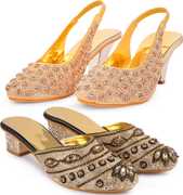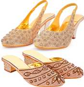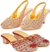 Dapka Work On Fabric Complte Hand Made Sandals With The Highest Quality Material Used , For Bride Or Other Partywear Users
