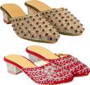 Women Heels Sandal (Green, Gold, Red , 12)