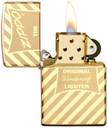 Inspired by vintage packaging; this design is a replica of a classic Zippo box top design. The design is created using the laser 360 process and finished on a High Polish Brass case. Comes packaged in a gift box. For optimal performance, fill with Zippo lighter fuel.