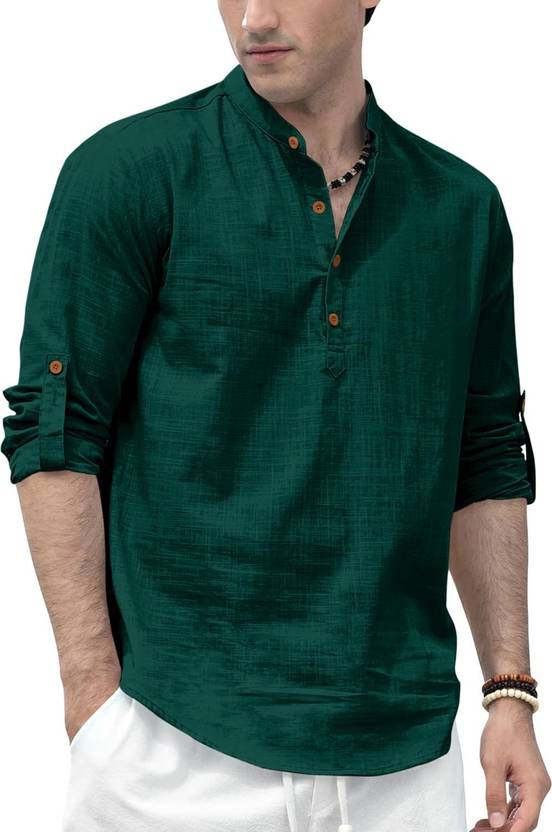 ZIRPIX Men Solid Straight Kurta (Green)