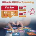 RELIABLE DURABILIRY: The Verilux 64GB SD Card is engineered for exceptional durability, featuring a high-quality chip that ensures reliable performance. It is designed to withstand various environmental challenges, offering waterproof, shockproof, temperature-proof, and X-ray proof properties. This robust construction promises long-lasting durability, making it an trustwhothy choice for safeguarding your valuable data.