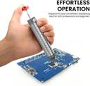 EFFICIENT SOLDER REMOVAL: The desoldering pump features a cylindrical tube with a plunger and a nozzle, enabling efficient removal of solder from electronic components. By pressing down the plunger, a vacuum is created, and when the nozzle is placed over the solder joint, the molten solder is effectively sucked into the tube. This precise and controlled process ensures the complete removal of solder, leaving the joint clean and ready for repair or replacement.