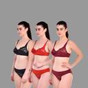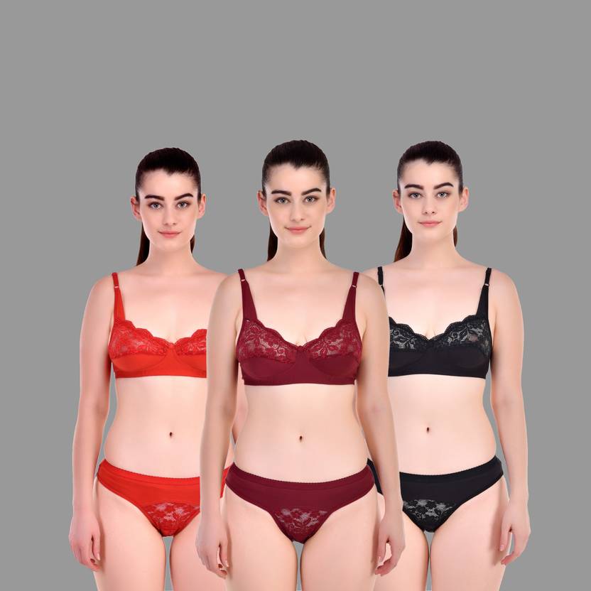 Bra & Panty Set Self Design Red, Black, Maroon Lingerie Set