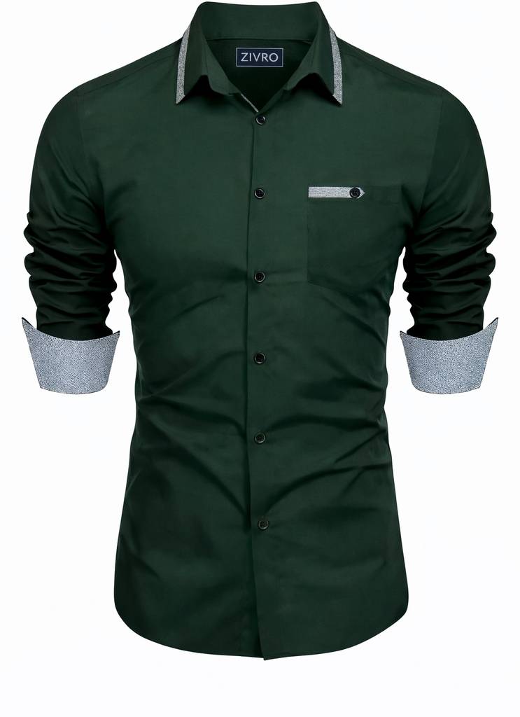 ZIVRO Men Solid Casual Green Shirt