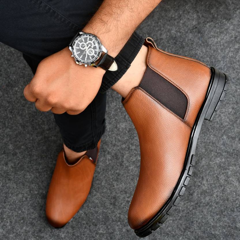 Zixer Casual Synthetic Leather Ankle Formal Shoes For Men High Top Formal Chelsea Boots For Men (Tan , 10)