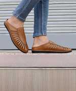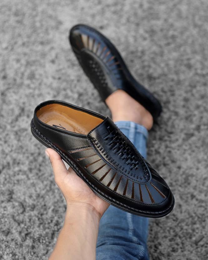Zixer Ethnic Wear Wedding Party Half Shoes For Men Mojri Casual Formal Peshawari Juti Ethnic Mule For Men (Black , 6)
