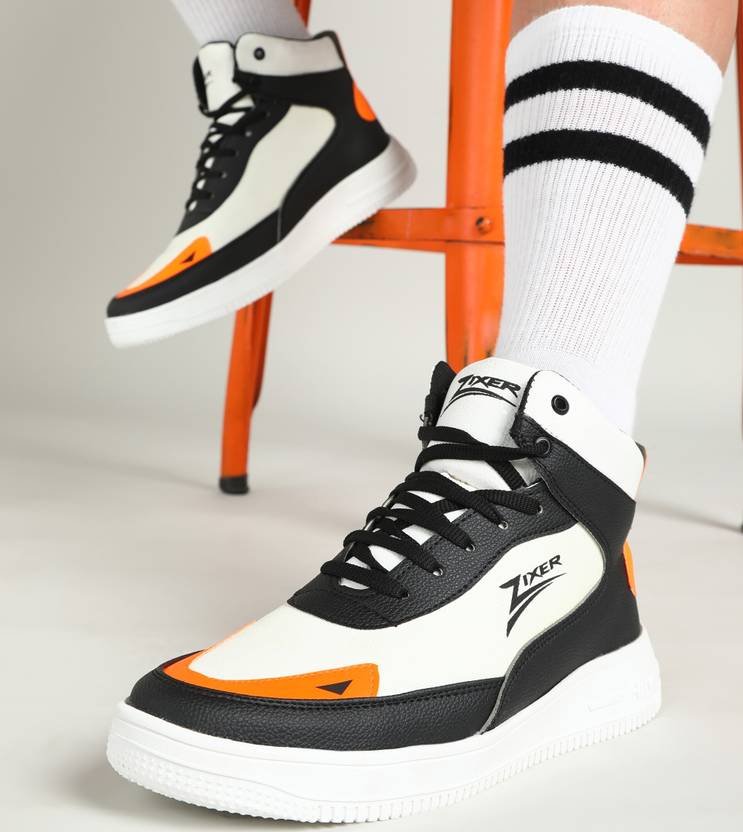 Zixer High Ankle Casual Shoes For Men Chunky Fashion Boots For Boys| Dancing Shoes Sneakers For Men (Black, White , 8)