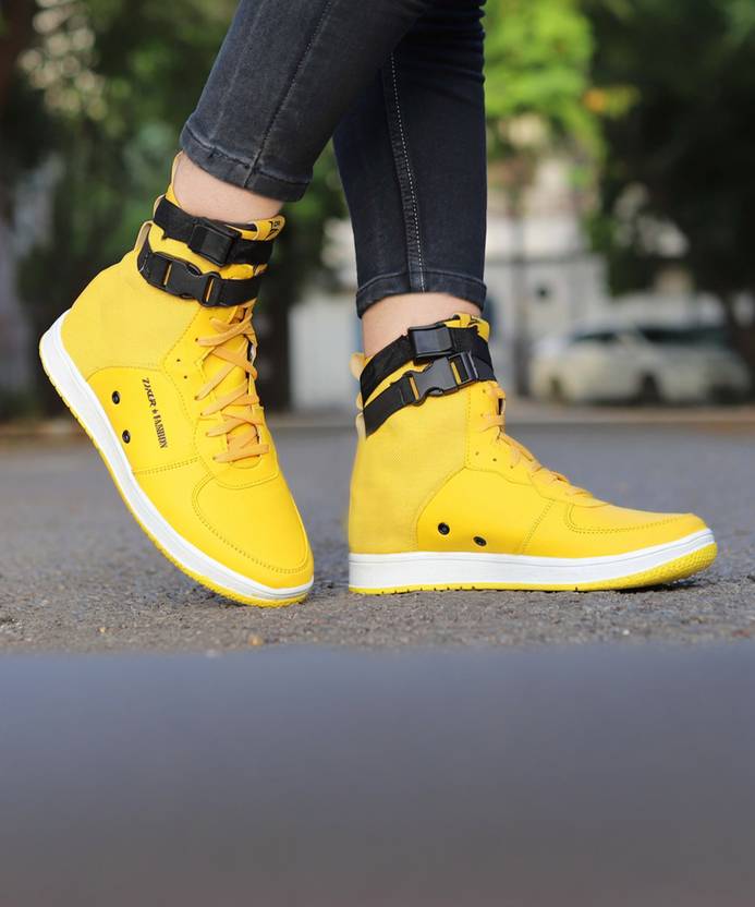 Zixer High Top Ankle Sneaker Shoes For Boys | Riding Trekking Cut Stylish Army Long High Tops For Men (Yellow , 8)