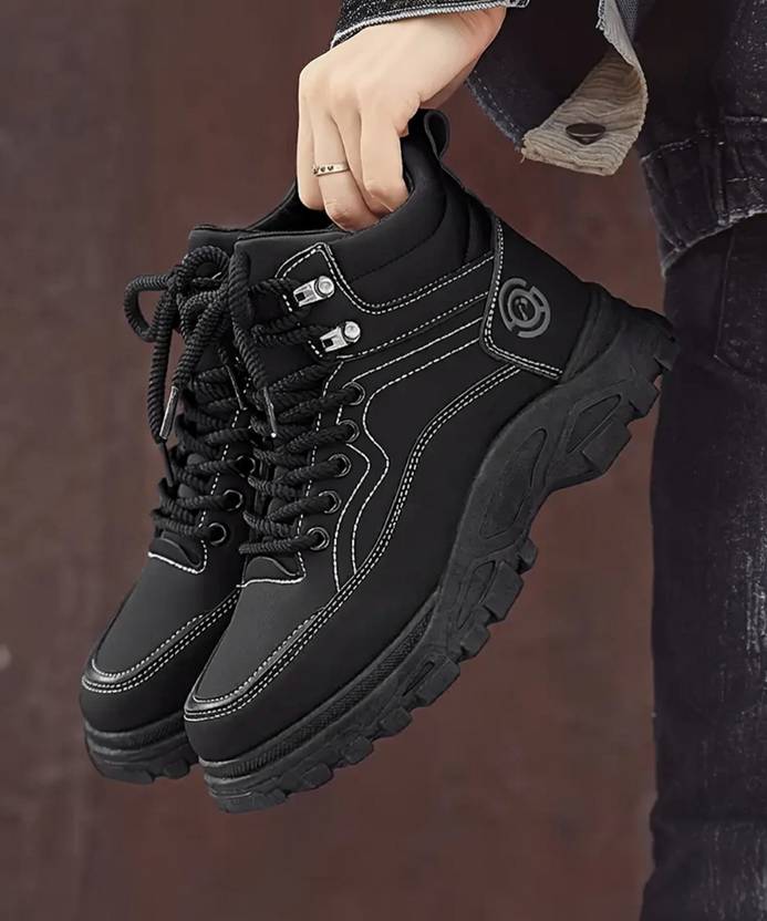 Zixer Long High Top Boots Shoes For Men High Ankle Long Hiking Tracking Jungle Outdor Outdoors For Men (Black , 6)