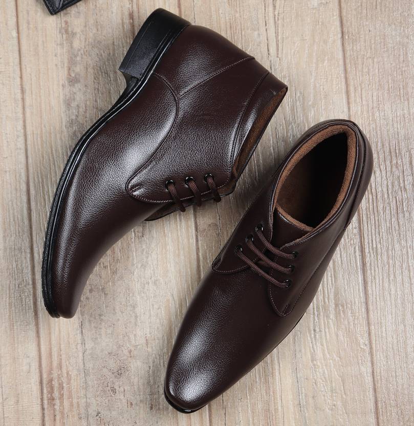 Zixer MEN'S HANDCRAFTED LEATHER ANKLE FORMAL SHOES FOR MEN || OFFICE LONG BOOT SHOES Lace Up For Men (Brown , 6)
