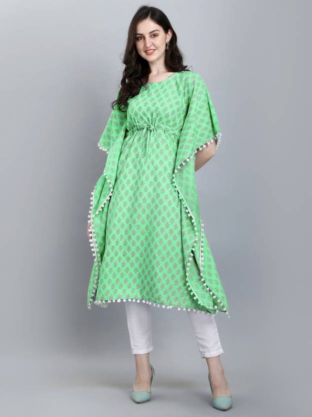 The premium line of kaftan clothing from ZM Studios features breathtakingly gorgeous prints and patterns. Discover the brand-new apparel styles. These kaftan Kurtis are incredibly elegant and cozy. Pom pom lace is used in this collection to enhance the elegance of your clothing. This attractive item gives you a classy appearance. The waist of this kaftan has dore with a Zumkha for adjustability. You can use it on both casual and formal occasions. Include such a lovely Kaftan-Kurti in your closet. Be the stylish woman and convey a glam and elegant appearance with classy patterns and elegant designs.