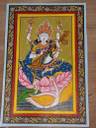 ZOCTALGEM Goddess Saraswati in sitting position with traditional art. Natural Colors 12 inch x 8 inch Painting (Without Frame)