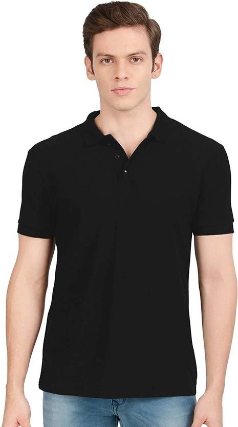 Men Solid Polo Neck Cotton Blend Black T-Shirt