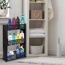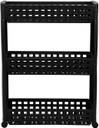 Equipped with multi layers of storage racks- this space saving storage organizer with wheels is ideal for storing and organizing kitchen, office and bathroom essentials, beauty products, cleaning supplies and toiletries.