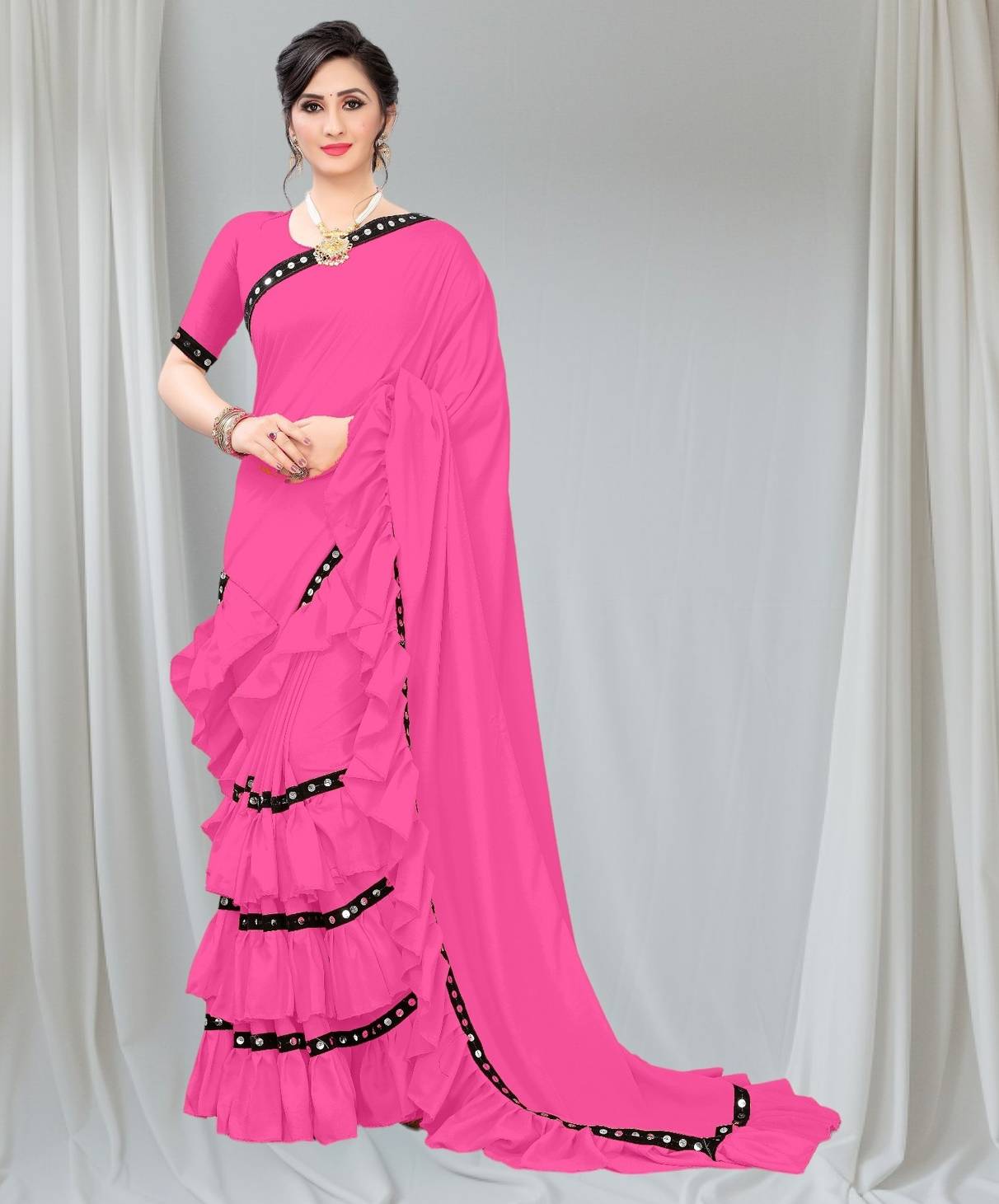 zoentik enterprise Self Design Bollywood Lycra Blend Saree (Pink)