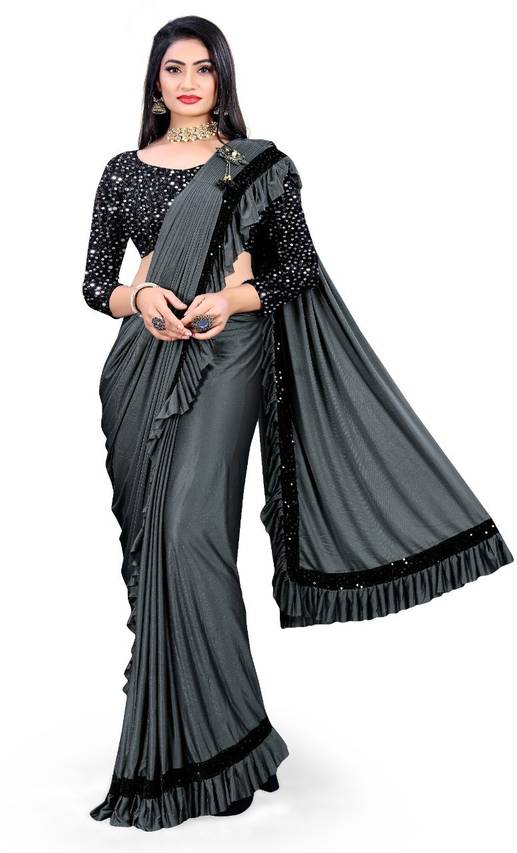 zoentik enterprise Solid/Plain Bollywood Lycra Blend Saree (Grey)
