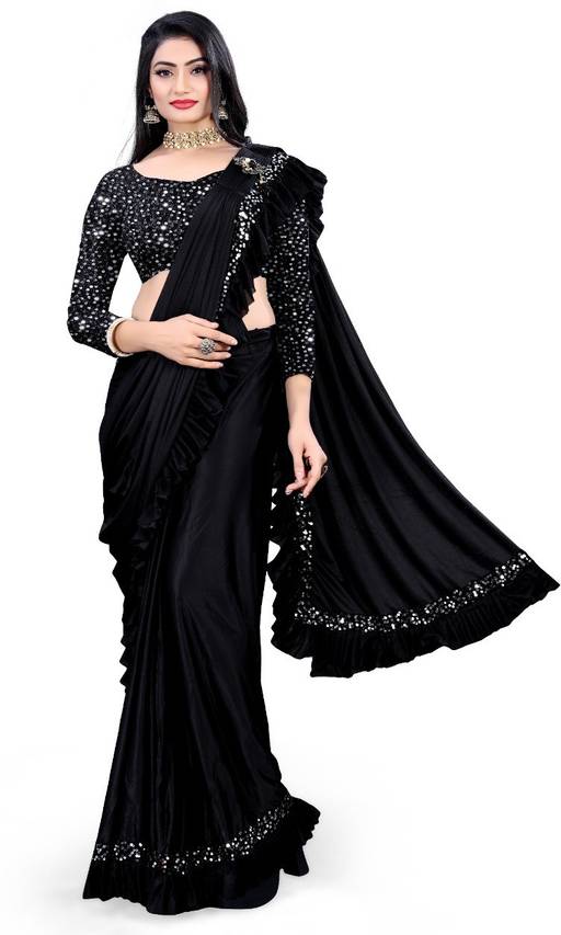 zoentik enterprise Solid/Plain Bollywood Lycra Blend Saree (Black)