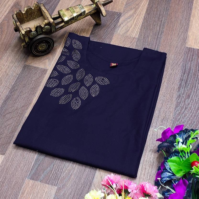 zoentik enterprise Women Patchwork Straight Kurta (Dark Blue)