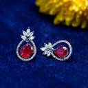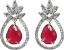 White Rhodium-Plated Dark Pink American Diamond Drop Earrings