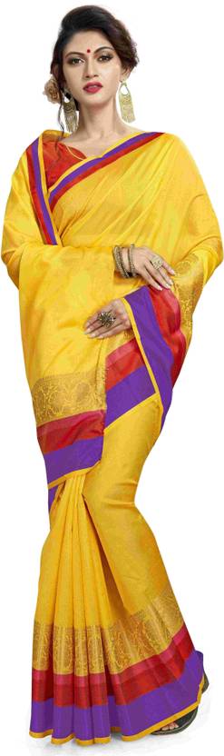 Self Design Bollywood Cotton Silk Saree (Yellow)