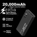 zofia 20000 mAh 22.5 W Compact Pocket Size Power Bank (Black, Lithium Polymer, Fast Charging, Power Delivery 3.0, Quick Charge 3.0 for Mobile, Earbuds, Smartwatch)