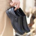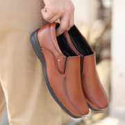 A slip-on formal shoe is a type of footwear that is designed to be easily put on and taken off without the need for laces or other closures. This type of shoe typically has a low profile, with a sleek and sophisticated appearance that makes it suitable for formal occasions such as weddings, business meetings, or other formal events. These shoes are typically worn for formal occasions such as weddings, business meetings, or other formal events. They are often designed with a pointed toe and a slim silhouette to give a polished and refined look. Slip-on formal shoes can come in a variety of colors such as black, brown, and even tan, and can be paired with a range of formal outfits including suits, dress pants, and button-up shirts