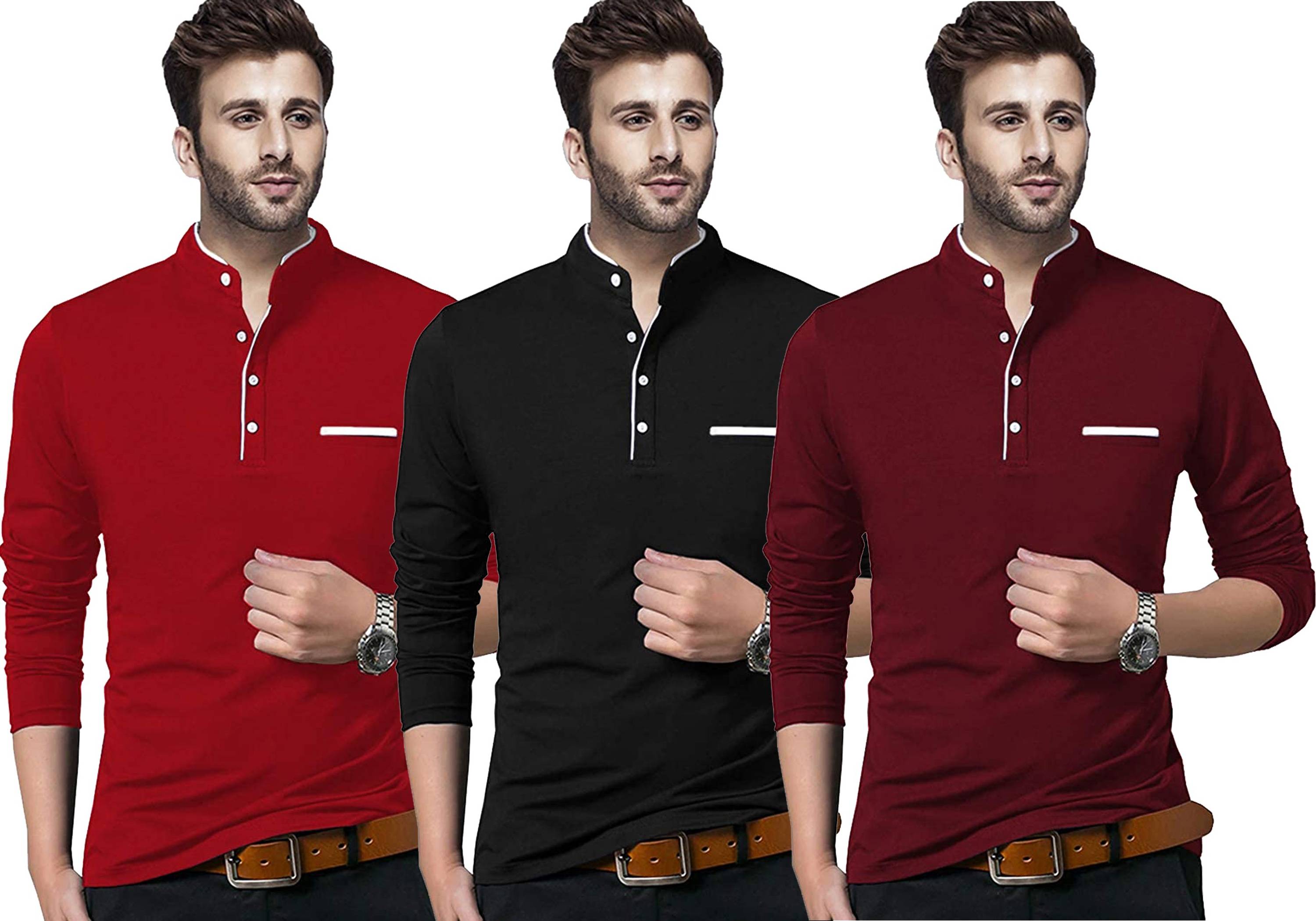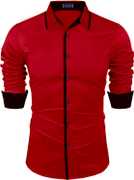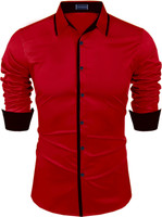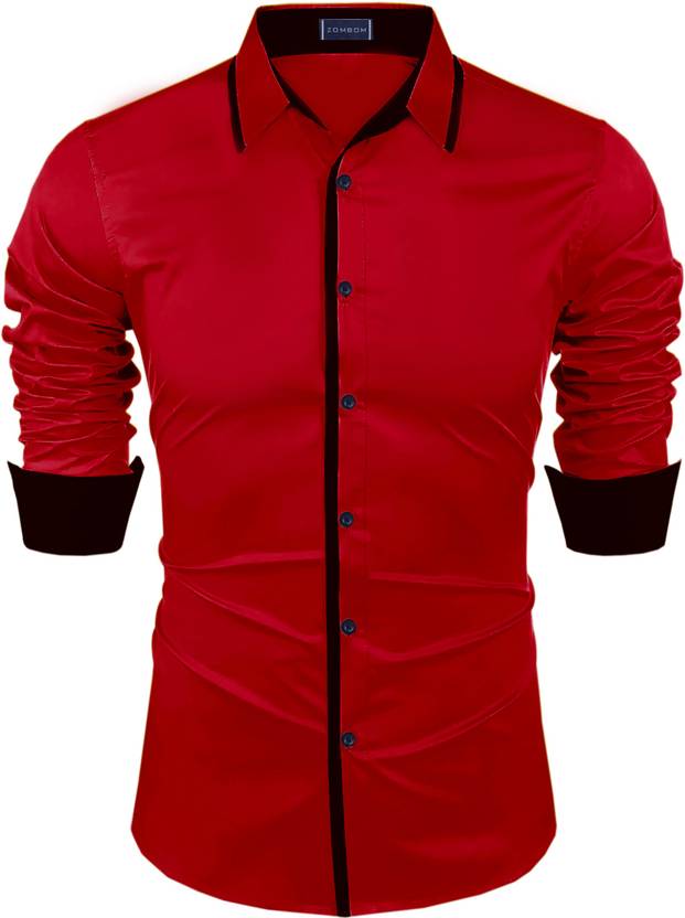 ZOMBOM Men Solid Casual Red Shirt