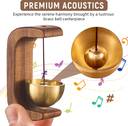 ELEGANT DOOR CHIME: Crafted with meticulous attention to detail, the door chime boasts an exquisite beech wooden base, fashioned in a pleasing circular shape. The rich, dark tones of the beech offer a touch of sophistication and warmth to any doorway, blending seamlessly with a variety of interior design themes. Its natural wooden aesthetic not only serves as a functional piece but also as a decorative addition to your home or office space.PREMIUM BRASS BELL CENTERPIECE: At the heart of the chime is a lustrous brass bell, skillfully positioned to capture and reflect light, adding an understated elegance to its overall design. This high-quality brass component is specifically selected for its ability to produce a crisp, resonant sound that invokes a Zen-like ambiancea delightful audio presence that enriches the environment while also performing its primary function of signal alertness.SERENE ACOUSTIC EXPERIENCE: When activated, this door chime emits a clear, sweet tone that lingers pleasantly, harmonizing with the tranquil atmosphere of your surroundings. Its gentle resonance ensures that the presence of guests is announced not with a jarring ring, but with a melody that carries the tranquility of a serene retreat. This soothing sonic experience distinguishes it from the abrasive sounds of conventional doorbells.VERSATILE USE AND THOUGHTFUL GIFTING: Boasting versatility, this chime is an ideal accessory for various spaces, including homes, offices, and shops. Its unobtrusive yet charming alert makes it suitable for environments where a soothing notification is preferred. In addition to its functional benefits, this elegant and polished wooden door chime serves as a perfect housewarming present, offering both aesthetic beauty and practical utility to the recipient.EFFORTLESS INSTALLATION PROCESS: The delicate wooden door chime is designed for simplicity and user-friendliness, featuring a magnetic backing. This innovative approach to installation means no tools are necessary; simply adhere the chime to any desired surface. The magnetic backing ensures stability and ease when positioning or relocating the chime.