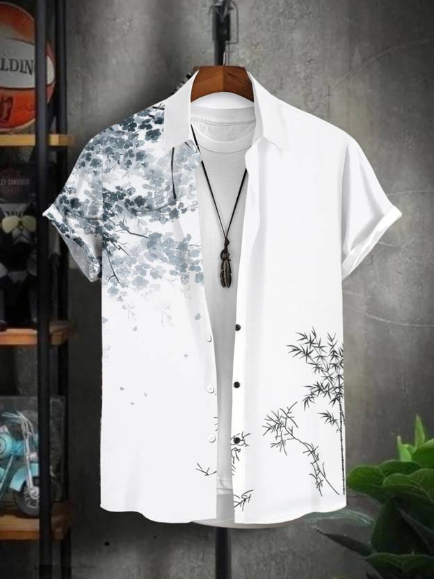 MENS STRIPED FLORAL PRINTED LYCRA STYLISH CASUAL SHIRTS