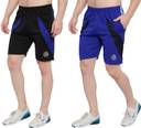 Pack of 2 Solid Men Black, Blue Running Shorts