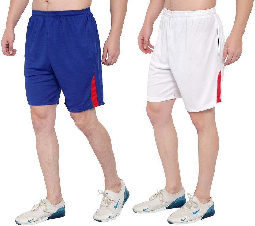 Zonecart Solid Men White, Blue Regular Shorts