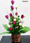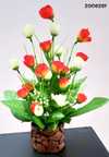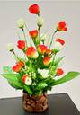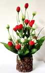 zonezer 1tulip Beautiful Flower bunch with wood coconut pot Orange, White Rose Artificial Flower with Pot (25 cm, Pack of 1, Flower with Basket)