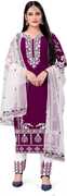 Embroidered Pakistani Style Georgette Pakistani Suit Will Make You Look Like A Diva With Its Traditional Style And Beautiful Embroidery Annotated Perfectly With Zari, Resham Thread And Sequance WorK On Its Georgette Flared Pakistani A-line Top That Is Paired With Matching Slik Santoon Bottom And Inner. The Beauty Part Of This Pakistani Salwar Suit Is Its Zari Embellished Pakistani And Soft Net Dupatta. Style This Pretty Attire On Any Wedding Or Eid Festival Party With Heels And Jewellery To Look Stunningly Beautiful From The Rest Of The Crowd. Zonfab Women's Purple Georgette Semi Stitched Top With Unstitched Santoon Bottom and Net Dupatta Embroidered Straight Kurta Dress Material (Pakistani Salwar Suit)