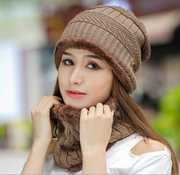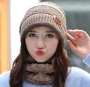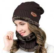 Unisex Brwon Winter woolen Beanie Knit Skull Hats with Neck Warmer for Men Women