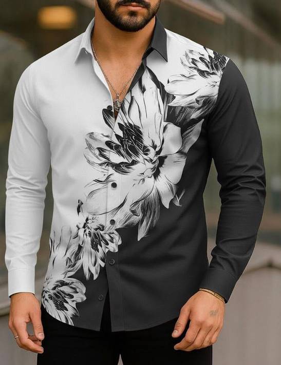 Add a bold and modern touch to your wardrobe with this stylish Multicolour Floral Printed Men’s Shirt. Designed for fashion-forward men, this shirt features a unique half-and-half color pattern combined with an elegant floral print that delivers a premium and eye-catching look.
