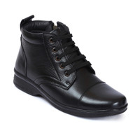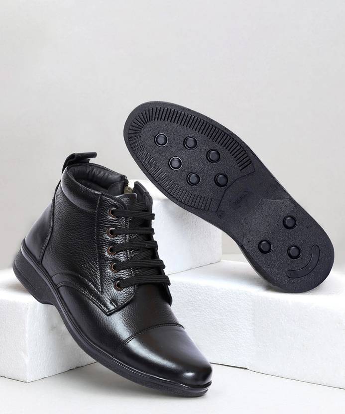 Zoom Shoes Genuine Leather High Ankle Boots Lace-up & Zipper Cushioned Insole Daily Comfort Boots For Men (Black , 11)