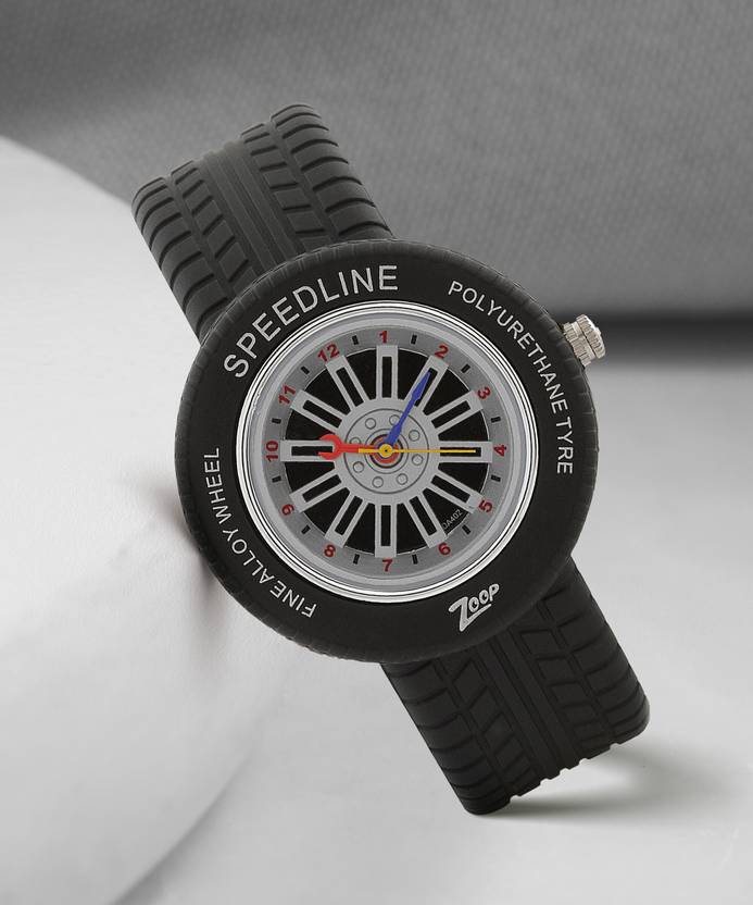This Zoop Kid’s Watch is thematically designed to resemble a car wheel with both the dial case and the strap shaped like alloy wheels. The dial is round in shape and sets against a small wrist perfectly, adding volume and style to it. The strap is made of Polyurethane, which provides a unique, metallic strength and toughness to a resilience and durability resembling that of rubber. Now, you need not fear your young one losing or misplacing his/her watch, with the strengthened grip of the watch clasp, specifically designed for rigorous childish activities. The Zoop Analog Watch has the conventional hour, minute and second hands for your child to conveniently tell the time. The watch text appears in funky fonts and the 3 hands are set against a detailed backdrop that goes with the alloy wheel theme, and provides a sporty look for all casual wear.