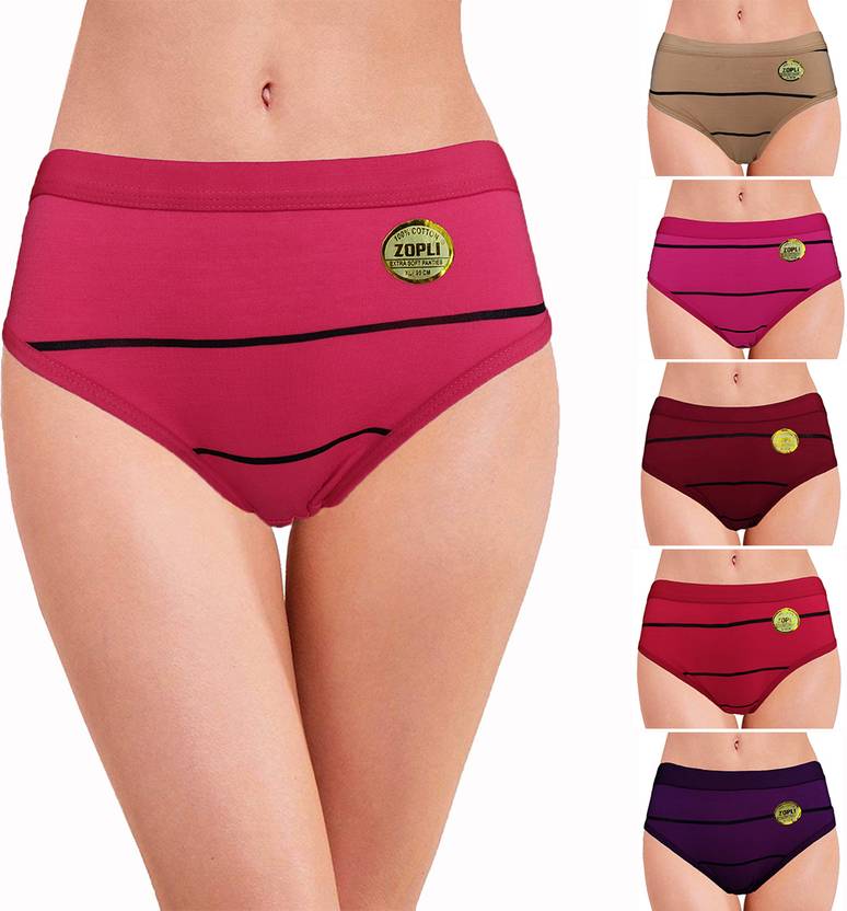 Trendy and classic designs panty for women by "ZOPLI" panty, our panties are comfiest, designed for maximum softness, girls underwear this collection provides all day comfort. 100% cotton panties for girls. Good stretch elastic waist is not only smooth under clothe, but soft against your body. Our panties shrinks less, retains color longer and stays soft wash after wash, breathable making this panty the ultimate combination of softness and durability. It's gentle to the touch and cozy on your rear, with seamless design panty, incredibly soft fabric underwear for girls, best comfort all day long panty. You will feel very comfortable Panty for women daily use and breathable, no marks and no irritation for most skin. Our panty collection is made from 100% cotton, with a seamless band and high cut leg for maximum comfort and coverage. Designed to be comfiest panties that you can wear all day long. The perfect fit for any occasion.