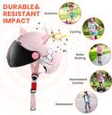 BUILT-IN VISOR FOR ADDED PROTECTION: Equipped with a practical visor, this helmet not only improves style but also offers enhanced forehead and sun protection. Whether biking or scootering under bright sunlight, the visor provides additional shading while complementing the helmets overall protective features.