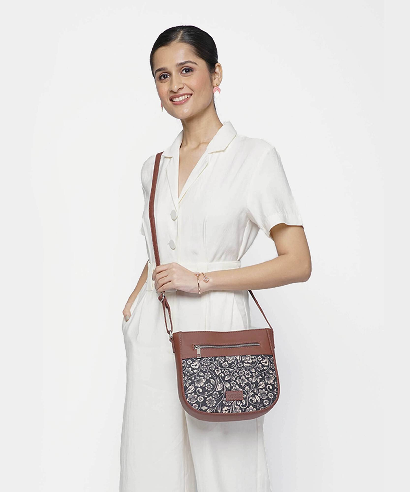 ZOUK Black Women Sling Bag FloMotif U Shaped Sling Bag