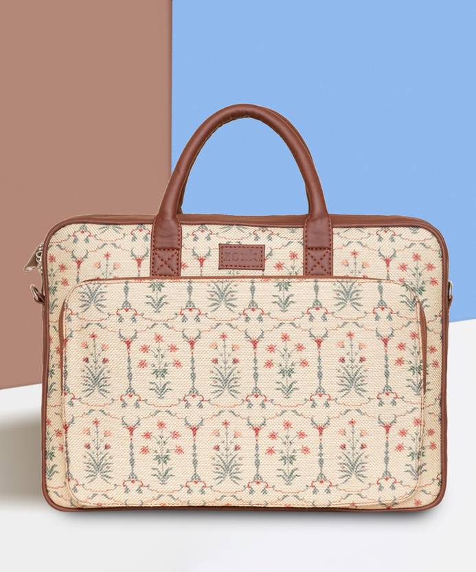 Our Laptop Bag is an ideal office bag, handbag or a Professional Bag for men and women. It can fit a laptop of upto 15.6 inches. Dimensions: 16 x 12 x 3 inch. Comes with a detachable padded Shoulder Strap. Made of Indian Ethnic Fabric and 100% PeTA Approved Vegan Leather.