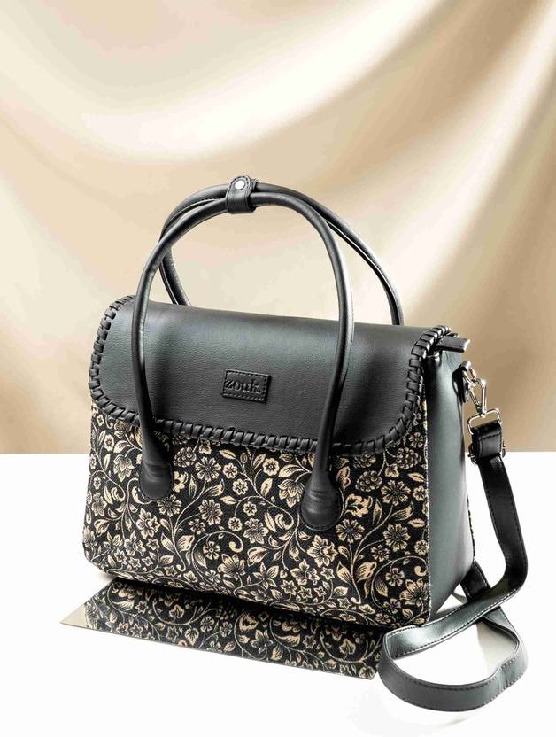 This is a Proudly Indian and 100% PeTA-approved Statement Satchel, This exquisite Satchel is a testament to timeless style. Its distinctive feature lies in its captivating exclusive prints, seamlessly blending contemporary artistry with classic design. Designed to cater to the modern woman's dynamic lifestyle, the interior of the Satchel is thoughtfully partitioned with a secure zipper compartment, allowing you to effortlessly organize and safeguard your essentials. convenient slip pockets further enhance the practicality, ensuring easy access to your smaller items. It comes with a top handle to provide a comfortable grip. For those on the move, a detachable shoulder strap offers versatility, allowing you to transition effortlessly from a chic handheld accessory to a hands-free, crossbody companion.