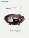 Travel with ease and style using this Proudly Indian, 100% PeTA approved vegan Urban Escape Bag, made for women on the go. With a padded laptop compartment (up to 16 in), passport and ticket slots, water bottle holder, anti-theft pocket, and trolley pass-through, it keeps all your travel essentials organized and secure. Spacious, chic, and comfortable to carry, it's your perfect companion for every journey.