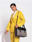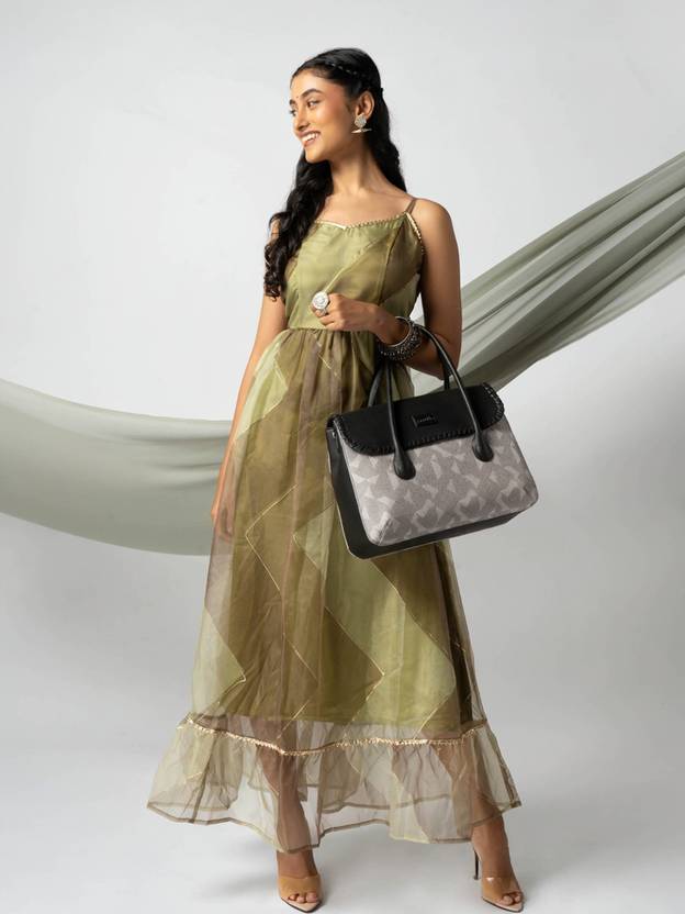 This is a Proudly Indian and 100% PeTA-approved Statement Satchel, This exquisite Satchel is a testament to timeless style. Its distinctive feature lies in its captivating exclusive prints, seamlessly blending contemporary artistry with classic design. Designed to cater to the modern woman's dynamic lifestyle, the interior of the Satchel is thoughtfully partitioned with a secure zipper compartment, allowing you to effortlessly organize and safeguard your essentials. convenient slip pockets further enhance the practicality, ensuring easy access to your smaller items. It comes with a top handle to provide a comfortable grip. For those on the move, a detachable shoulder strap offers versatility, allowing you to transition effortlessly from a chic handheld accessory to a hands-free, crossbody companion.